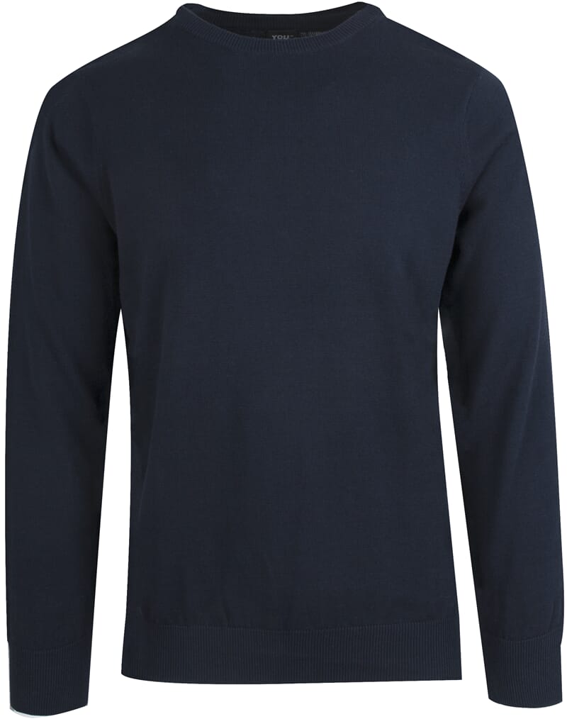 Klassisk finstrikket pullover til herre. Rund hals og ribdetaljer i linning, hals og mansjetter. Passer utmerket utenpå skjorte eller t-shirt.