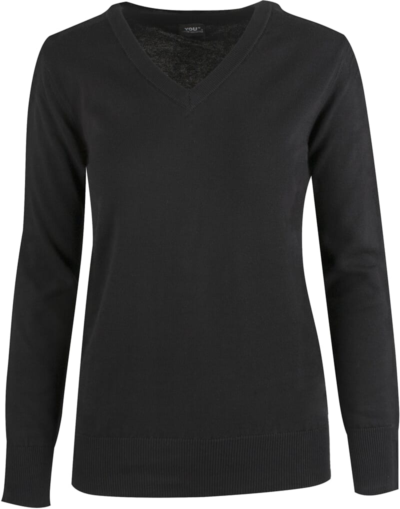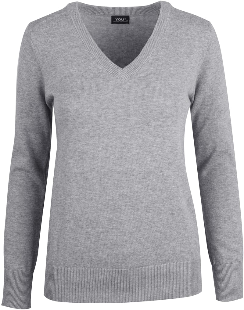 Klassisk finstrikket pullover til dame. V-hals og ribdetaljer i linning, hals og mansjetter. Passer utmerket utenpå skjorte eller t-shirt. 230 g/m². 100% bomull. 5% elastan i rib.