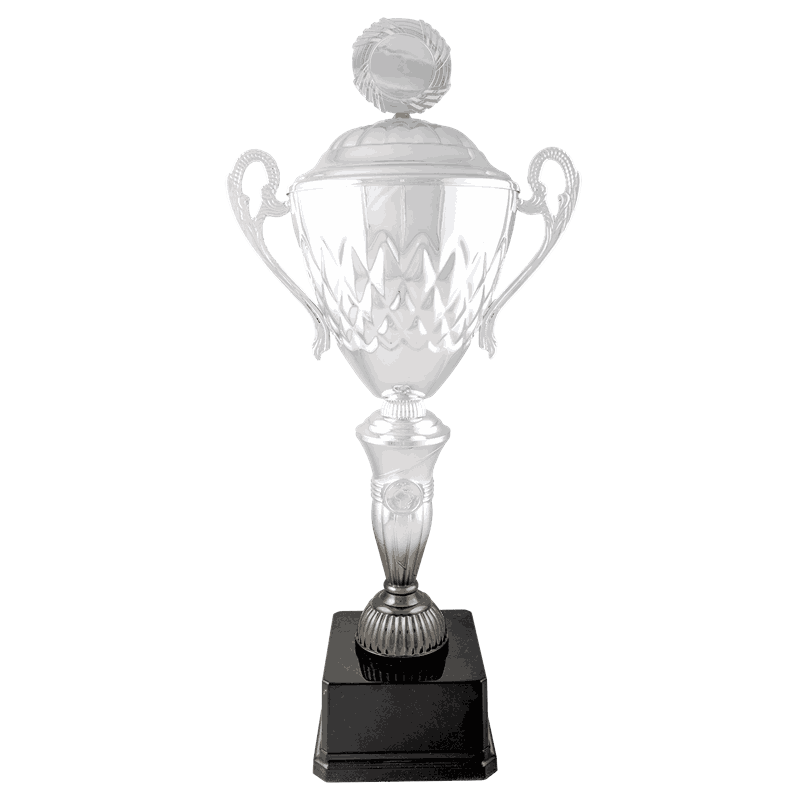 Materiale: Pokal cup, lokk og topp i metall, mellomdel i plast, sokkel i marmor med god vekt