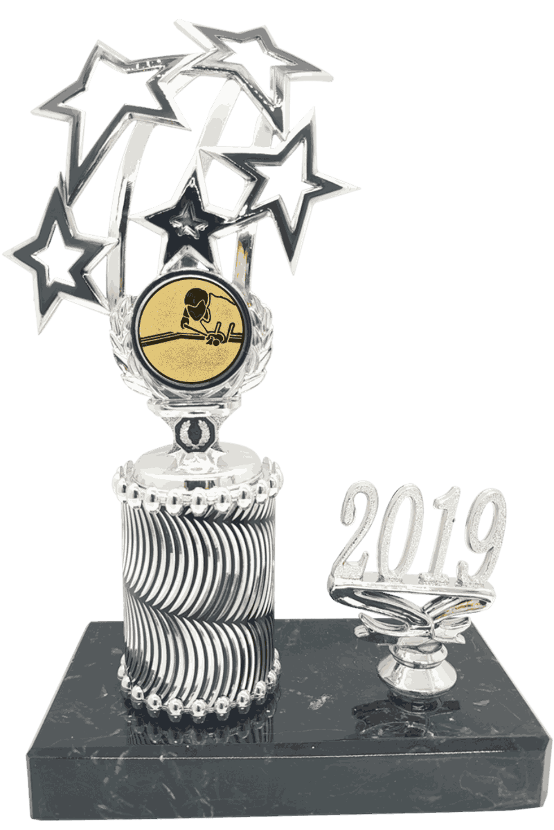 Stjerna i 4 størrelser med årstall for biljard