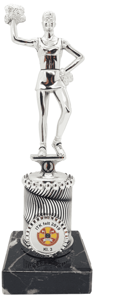 Kan leveres med tekst og klubbmotiv på sokkelen.