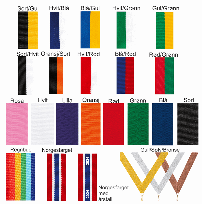 Bånd i 30 forskjellige farger inkl. i prisen.