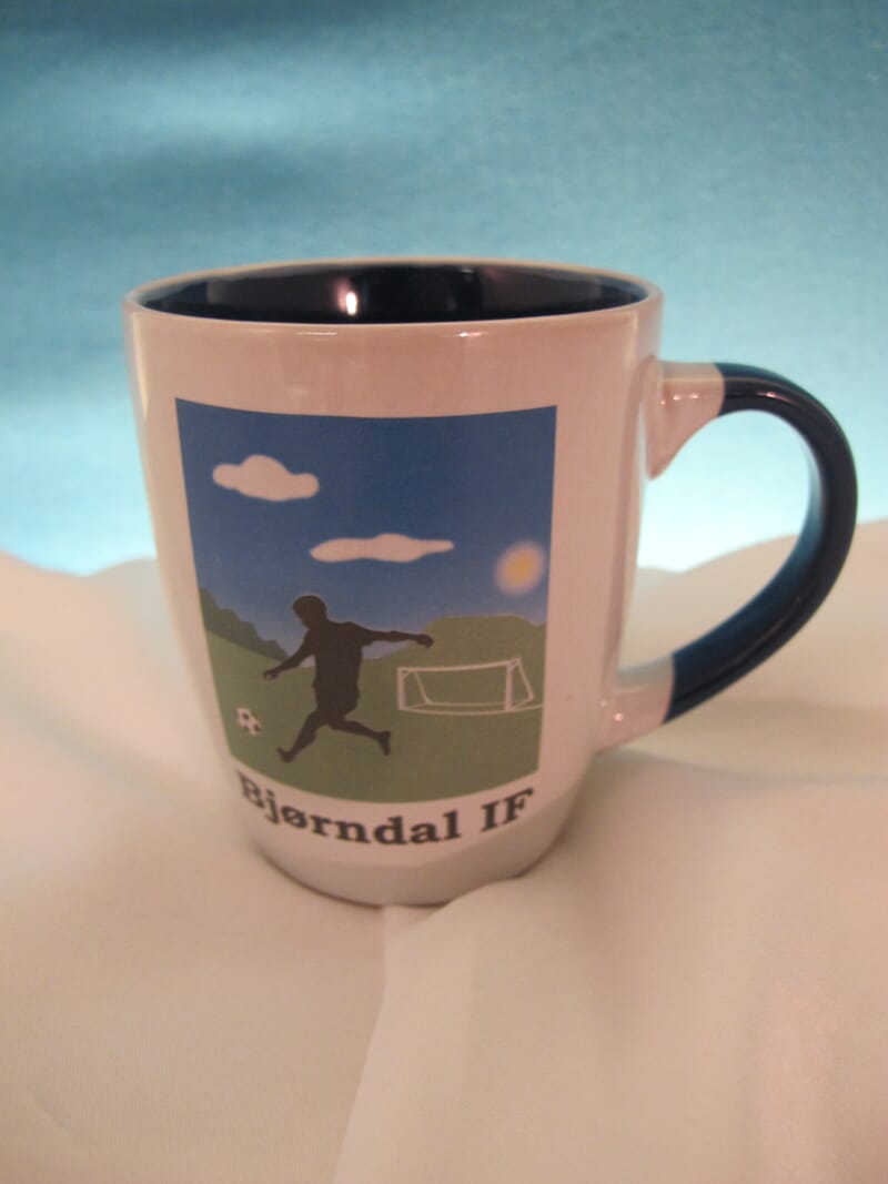 Krus med blå hanke og blå innerside Kan leveres med tekst