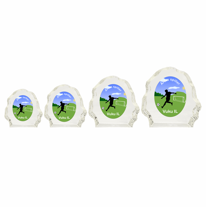 • Glassblokk med Beijing fotballmotiv finnes i 4 størrelser