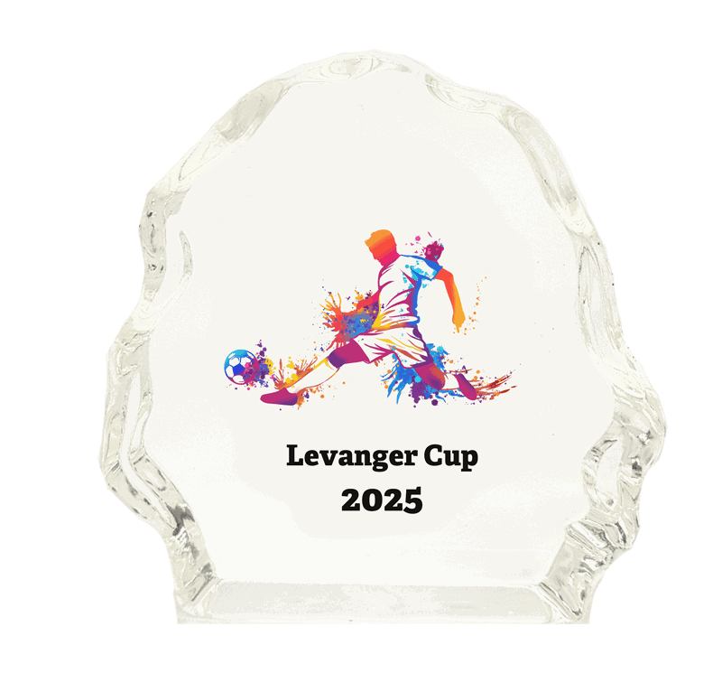 Glassblokk med fotballmotiv.