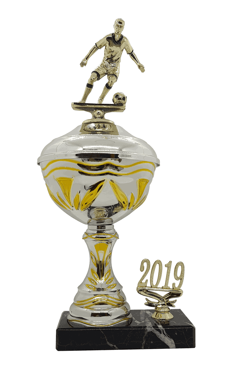 Gullstrupen pokal i 5 størrelser med årstall for fotball