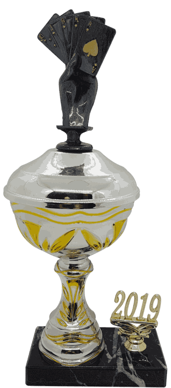 Gullstrupen pokal i 5 størrelser med årstall for kortspill