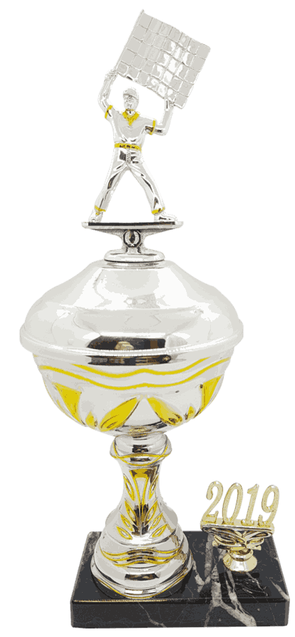 Gullstrupen pokal i 5 størrelser med årstall og flaggmann