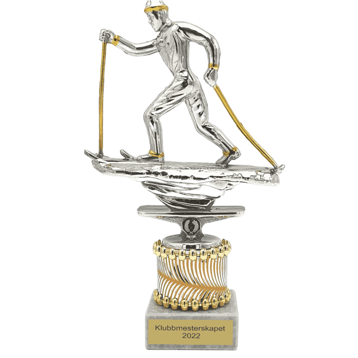 Statuetten kan leveres med gravering på plate eller klistremerke på sokkel