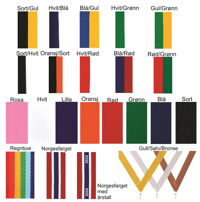 Bånd i 30 forskjellige farger inkl. i prisen.