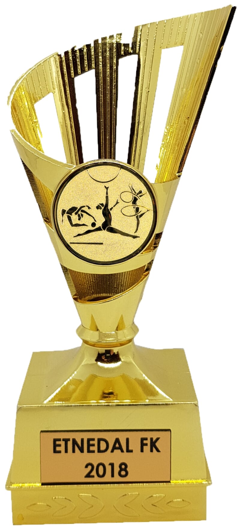 14 cm høy statuett, som leveres med motiv, og eventuelt valgfri tekst.