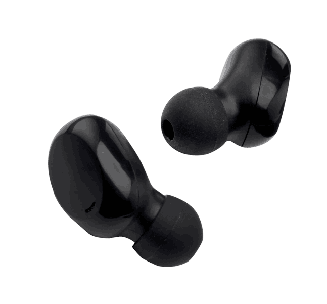 Rekkevidde opptil 10 meter. Inklusive silikonøreplugger i 3 størrelser, mikro-USB-ladekabel og bruksanvisning. Pakket enkeltvis i eske.