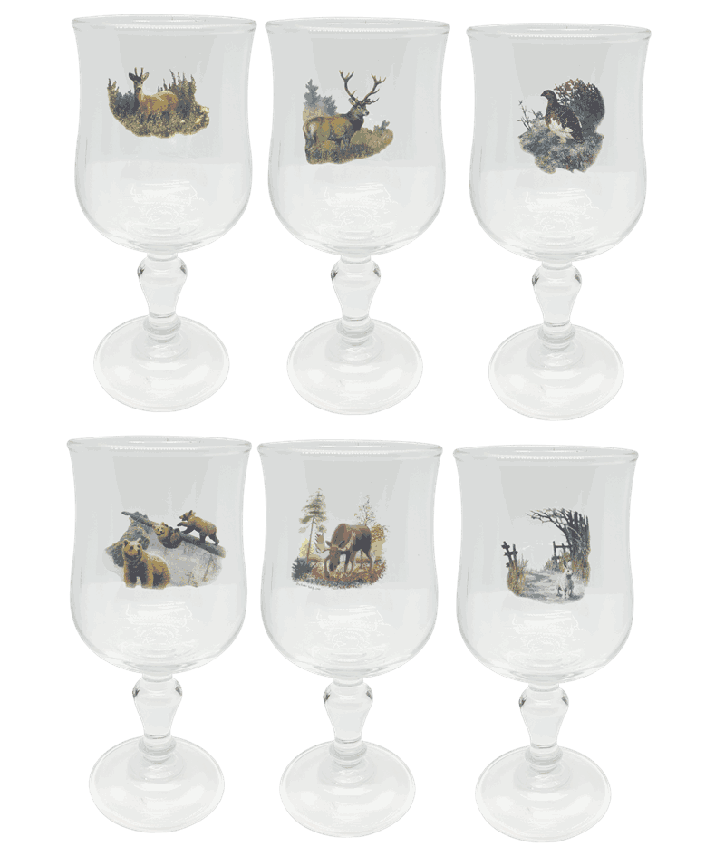 Rødvinsglass 18 cl. med norske dyr 6 pk.